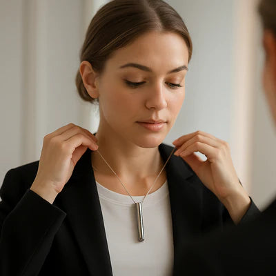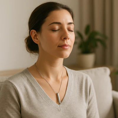 Unlike bulky devices, BreatheFree is designed as a minimalist necklace that fits any outfit. It’s discreet enough for the office, dinner with friends, or your daily commute, so you can feel confident while staying calm.